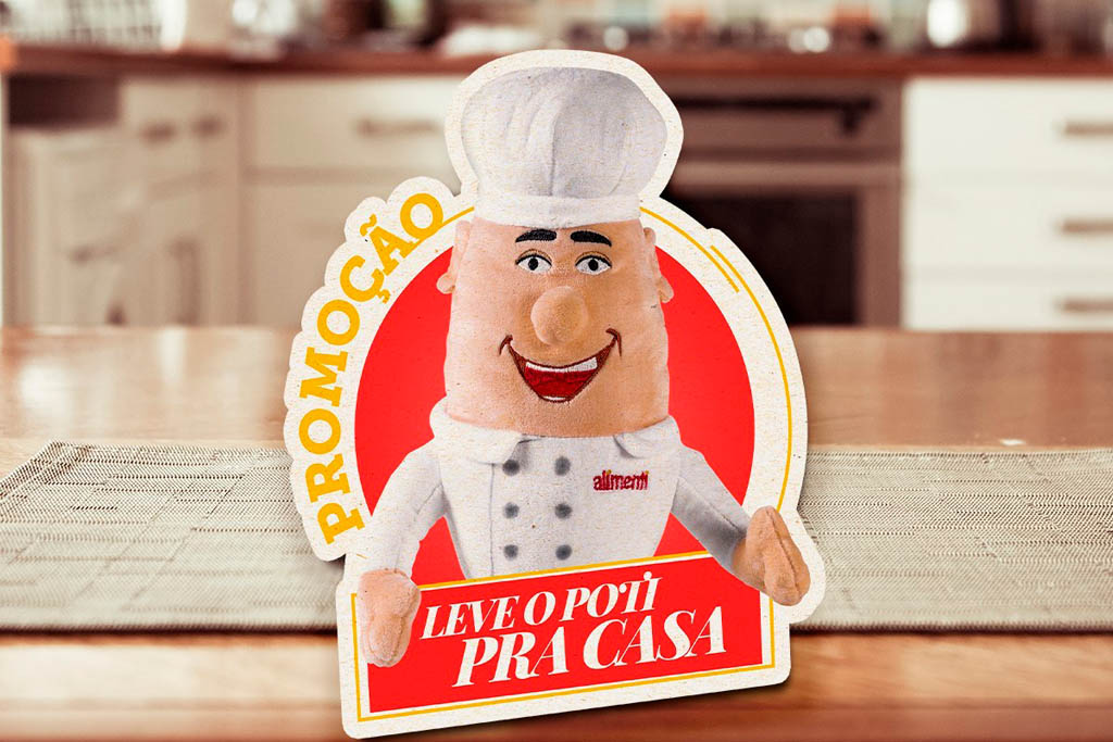 Foi desenvolvido um chefinho de pelúcia para a Alimenti, que seria entregue aos participantes da promoção.