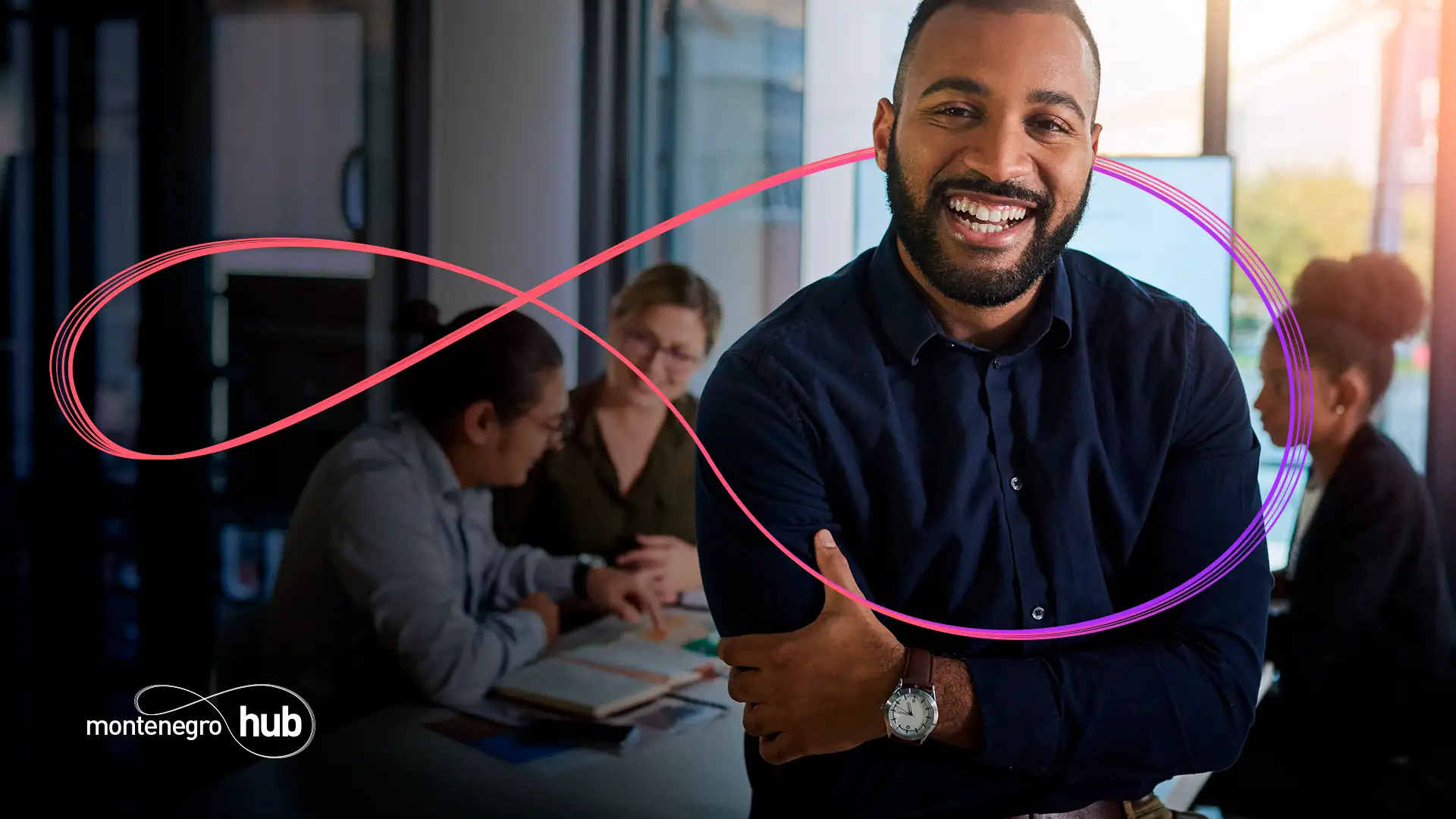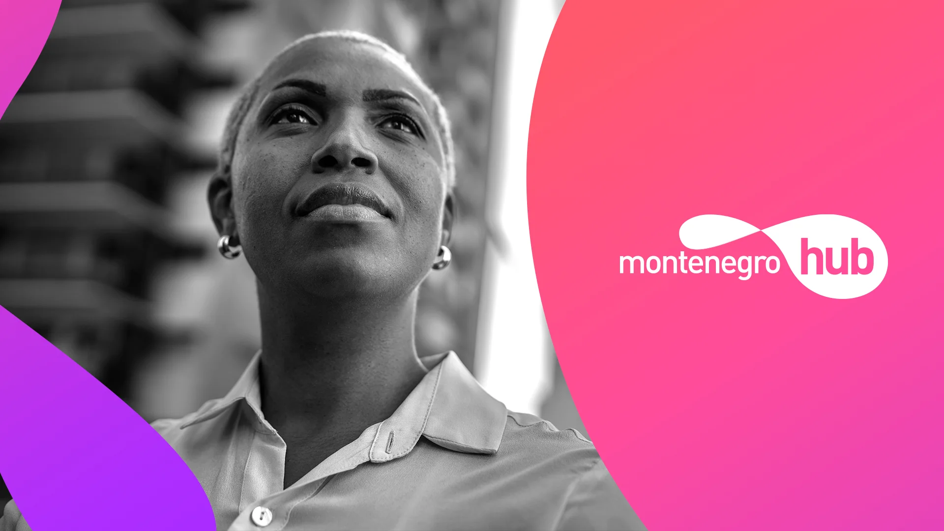 Montenegro Hub representa um sistema em movimento e vai além de uma marca. De cara, a logo traz formas que giram em torno de um eixo: remetem ao símbolo do infinito, mas com um toque autoral, que fala de continuidade, automatização e fluidez entre as frentes.